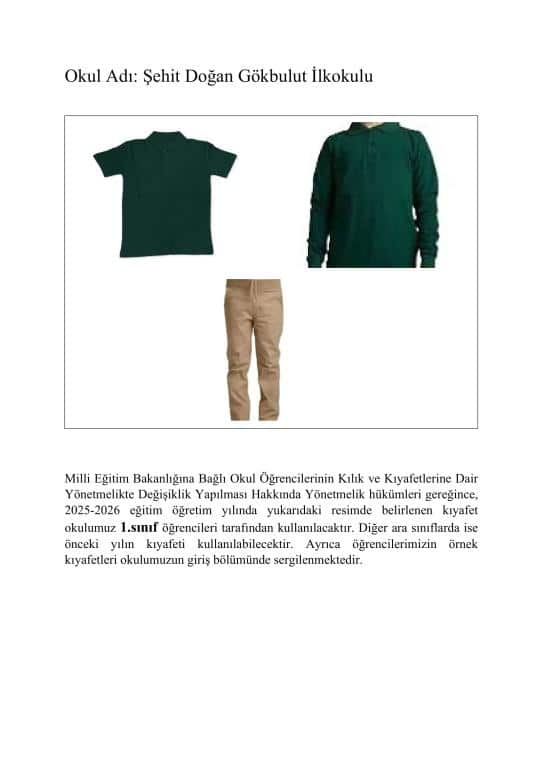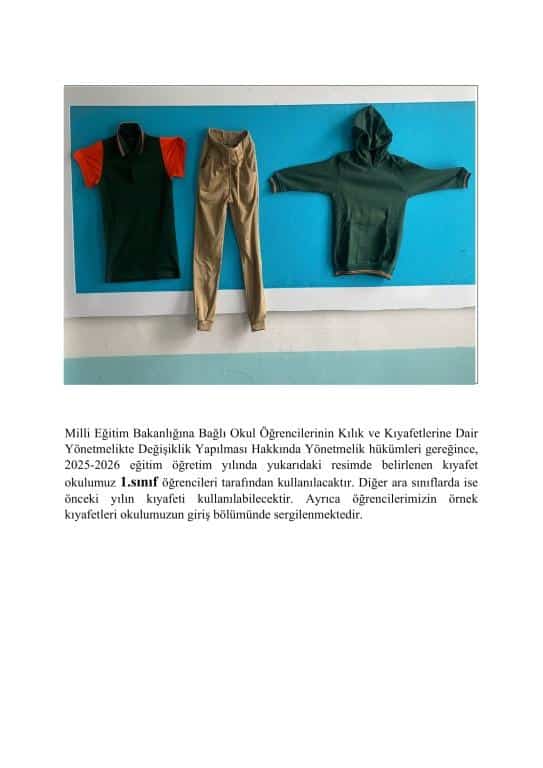 2025-2026 Eğitim Öğretim Yılında Kullanılacak Okul Forması